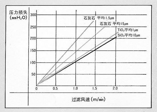 不同粒徑粉體其過濾風(fēng)速及溫度變化同阻力損失的關(guān)系(見表三、表四)。