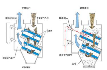?含塵氣體由除塵器下部進氣口進入除塵器內部的過程中, 其中較大顆粒(直徑 100um), 首先被沉降; 較小顆粒(直徑 0.1~50um)在空氣處理室被吸附在濾筒表面。 過濾后的氣體通過濾筒內側進入潔凈空氣室, 然后從出口排放到后端廢氣凈化設備中。 F9 過濾器可以氣體中 0.5um 以上的塵凈化率≧99%。我公司設計生產的過濾器屬于模塊化設計方便組合、安裝拆卸,使設備具備良好的實施性。