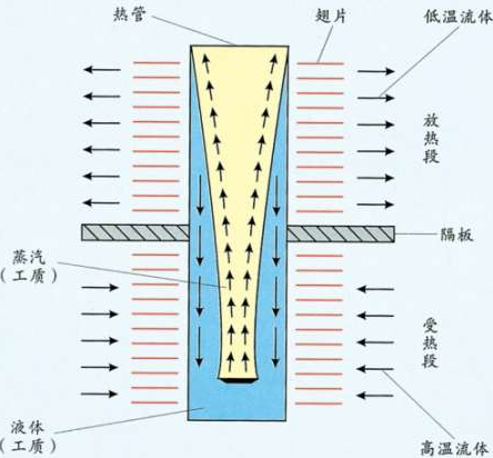 導(dǎo)熱管是一種具有高導(dǎo)熱性能的傳熱元件,熱管的高導(dǎo)熱能力與銀、銅、鋁等金屬相比,單位重量的熱管可多傳遞幾個(gè)數(shù)量級(jí)的熱量。它通過(guò)在全封閉真空管殼內(nèi)工質(zhì)的蒸發(fā)與凝結(jié)來(lái)傳遞熱量,具有極高的導(dǎo)熱性、良好的等溫性、冷熱兩側(cè)的傳熱面積可任意改變、可遠(yuǎn)距離傳熱、可控制溫度等一系列優(yōu)點(diǎn)。由熱管組成的熱管換熱器具有傳熱效率高、結(jié)構(gòu)緊湊、流體阻損小、有利于控制露點(diǎn)腐蝕等優(yōu)點(diǎn)。?